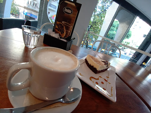 Read moreMe gustó mucho el local (ubicado en una de las esquinas principales de la ciudad) podría decir que da la sensación de un ambiente que mezcla entre vintage y moderno, aunque quizás es una aproximación a lo q quiero expresar (amo el toque de las plantas); más el primer piso con sus ventanales dan una vista panorámica/ parcial de la Cañada y Av. Colon, que hacen del ambiente, un lugar agradable. Respecto a la atención es cordial, correcta. No he podido probar los helados, pero las opciones desayuno están buenas. Probé un mousse de naranja que me deja conforme (debo aclarar q no soy muy dulcera, más allá de q me gusta incursionar, y quizás no debí ponerle azúcar al café con leche para no saturarme con dulzura las papilas gustativas, pero para quien sea amante de las cosas dulces, lo encontrará gustoso, rico, además de ser un sabor cuidado y casi liviano -al menos en textura si-,...