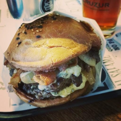 Read moreLas hamburguesas están buenas solo para la foto, por que están cocinadas con aceite viejo, igual que las papas fritas, un gusto a grasa tremendo. Nos cobraron antes de servirnos y había pedido cerveza negra y me trajeron una cerveza roja, cuando me quejé, en vez de devolverme la plata me quisieron dar una botella de agua y una lata de Sprite???? Malísimo servicio. A mi hijo no le di ni las papas de lo grasientas que estaban. Y pedimos empanadas, fritas recalentadas, de vaya uno a saber de cuando son. Antes de volver a comer ahí prefiero un patada al hígado de Chuck...