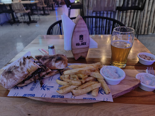 I read the good reviews and decided to try it out. I arrived at 20:30 and was the only customer in the restaurant. I guess I was a bit early? 🤷 The atmosphere was great and it reminded me of the restaurants in Holbox (Mexico). The music was a bit too loud for my taste (and not my kind of musc). The service staff didn't speak any English (which is okay, I guess) so it was a bit difficult to make an order. I ordered the pulled pork burger. I got peanuts as a snack for free and some bread sticks which were really good. The portion was very big and tasted fantastic. I really loved the food. The bill for the buger with fries and a beer came to 2300 persos which is an amazing price for so much food. I definitely would recomment Holbox to everyone to try out! Greetings...