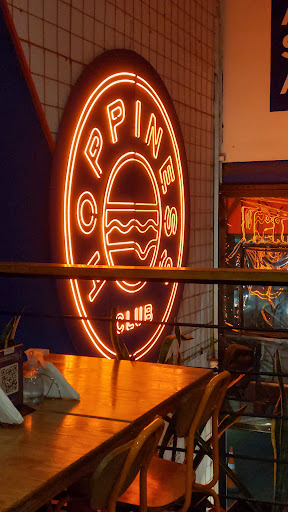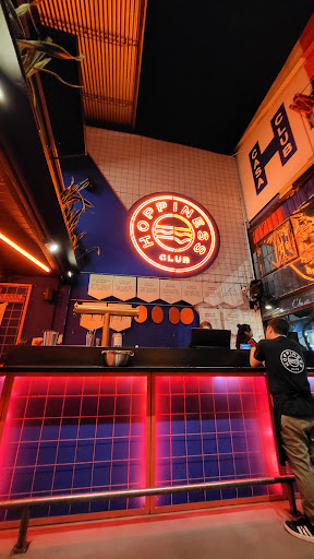 Comida Pedimos una bacon burger doble y simple con limonada y fanta. La salsa Hoppiness tenía un sabor a ajo demasiado intenso por lo que no se sentía ni el sabor del cheddar. Pedimos sorbete para la limonada (que por cierto era más hielo que bebida, y por el tamaño del vaso era difícil de tomar) nos dijieron que no había. Luego pedimos aderezos (mayonesa y ketchup) y nos trajeron la salsa Hoppiness (otra vez la salsa de ajo). Cuando le comentamos que no era mayonesa, nos dijeron es "la mayonesa casera de acá". Por lo que nos quedamos sin aderezos ya que no le íbamos a tirar más ajo a la hamburguesa y menos a las papas. Lo que puedo rescatar es el pan. Muy rico y distinto. Las papas tenían sabor a harina de arepas. Por cierto, todo esto muy salado como cuando se intenta tapar...