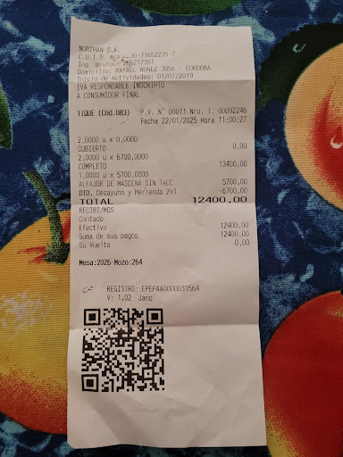 Read moreLa verdad que de todas las veces que fui nunca pensé que podían ser tannnnnn caros . Y mala atención.. llegue y pedí la carta , tiene carta QR, a la cuál no se puede acceder, el mozo nos informa que no funciona. Tienen una promoción 2x1 en desayunos y merienda de lunes a viernes . Salen $6000 cada merienda .( Si pedís 2 pagas$6000) Café con medialunas . Fui con una amiga celíaca y pedí 2 meriendas con media lunas y pregunté si tenían un alfajor o algo para ella . Solo tenían alfajores de Maicena Pequeño (sin logo de que era para celíacos envueltos en papel film ) el mozo no sabía cuánto salía . Lo pedimos . El alfajor estaba crudo era espantoso y no lo pudo terminar , cuando nos traen la cuenta el alfajor me lo cobraron como si fuera de oro $5700 un alfajor pequeño de Maicena que en cualquier bar de mejor prestigio cuestan $2000 ,o $3000 ... Una vergüenza el mozo nunca me hizo una atención ni nada ..... La merienda más cara del mundo si no pueden ver la carta QR debería por lo menos darla en papel . Para no tener estás malas sorpresas ... La verdad una terrible experiencia. No recomendado...