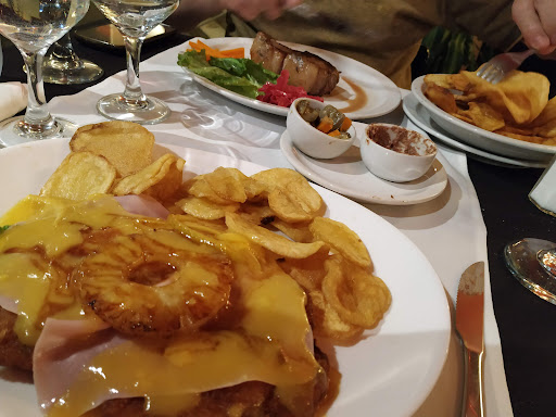 Read moreEl lugar impecable, la atención muy buena, nos atendió una señora de pelo cortito muy muy atenta y cordial... Excelente atención de ella. La comida muuuuy abundante, rica, se podrían mejorar un poco los sabores de las salsas rojas pero estába muy bien, pedimos como entrada matambre arrollado con rusa que no estaba muy rico... Pero después para cenar pedimos un matambre de cerdo a la pizza que era una mantequita y viene con papas noisette (muy bueno la verdad),una milanesa a la napolitana que era bien grande con mucha salsa, mucho queso y una porción de papas gigante y deliciosa. Un flan con dulce y crema riquísimo! Es un lugar muy recomendable y un ambiente familiar. Hay un poco de demora en que llegue la comida pero te entretienen con una entradita de escabeche y paté muy rica. Quedamos muy satisfechos! En general del 1 al 10 le damos un 8.50 a la comida... 4 estrellitas y 5 para la Moza porque su atención...