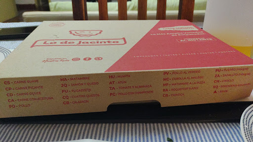 Primera vez que compramos empanadas en Jacinto. Hicimos pick-up y partimos hacia las sierras, específicamente Bodega Las Cañitas. Pedimos las nuevas XXL de cerdo y cerveza, tucumanas y vacío braseado. Las de cerdo y cerveza bastantes suaves, no se distinguió el sabor de la cerveza negra. Casi que parecían de pollo. Si recomiendo las de vacío y la tucumana. El relleno en los tres sabores fue importante. Solo recomiendo la salsa criolla. Precio elevado pero valió la pena. $4.300 la...