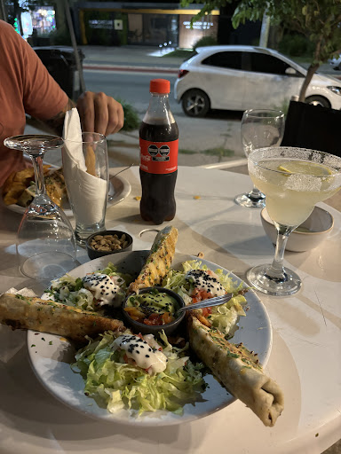 Fuimos anoche con mi pareja pedimos fajitas para 2 y una limonada... La limonada la tuvimos que devolver ya que a la hora de probarla era fea y artificial, al consultar con la mesera dijo que no es de limones exprimidos sino jugo de botella. En cuanto a las fajitas muy ricas pero mucho a mejorar: Te viene con 3 tortillas súper chicas (como un disco de empanada) y si pedis más tortillas te cobran $70 por cada una (carisimo) Te dan a elegir 3 salsas que son ricas pero muy poca cantidad (es como una cucharada sopera) la picante no pica y si querés pedir otra salsa te cobran $150 más (carisimo) La atención bien El lugar me hubiese gustado que mi mesa no esté en la vereda donde pasan todos Recomiendo ambientar con una leve...