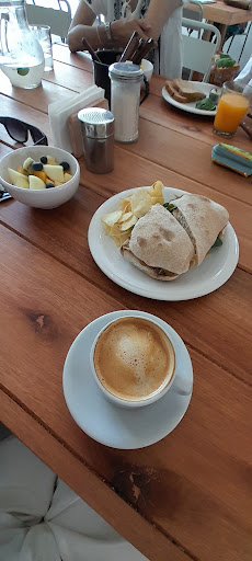 Read moreLlegue por recomendación y la verdad que me gustó, el ambiente es muy lindo con buena musica,destaca su decoración y el lugar muy grande, con una mesada con preparación a la vista ( eso me gusto bastante) lo que pedí fue un desayuno serrano que constaba de café, ensalada de frutas y un sandwich de rucula la verdad que la porción fue muy buena y ambundante, lo que me pareció curioso es que las mesas al ser grandes (se podría compartir con otros comensales como así también cuando se viene en un grupo grande) tenía un jarro con todos los cubiertos necesarios listo y uno los retiraba de ahí, (como también servida cosas más cotidianas ya en la mesa como la sal y las servilletas) la atención fue muy buena, destacó que a esa hora estaba casi vacío pero fue muy amables las dos chicas ( pero por la magnitud del espacio físico y las mesas que disponen de haber más gente se requeriría más personal de atención, ya que solo constaban de dos chicas) fuera de eso muy conforme con el desayuno y el precio por este, definitivamente volveré para probar algo de menú del día o alguna otra comida...