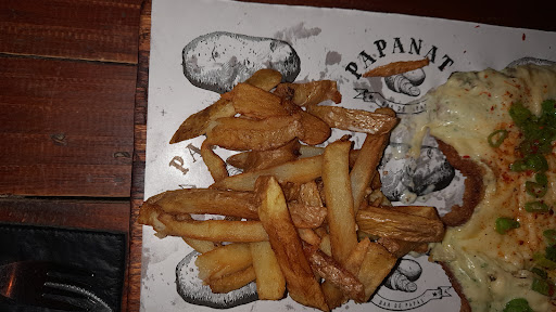 Voy desde que se inauguró el local y desde ese día que escucho puras quejas, de las cuales me sumo, de las banquetas que estan en la parte de afuera. Son horribles. Por otro lado, pedi una promoción de papas libres, que promocionaban en la pagina de instagram por una X cantidad de dinero en efectivo, al llegar al local pregunte si ese era el precio para asegurarme de contar con la plata. La sorpresa fue que al pagar me cobraron el doble diciendo que la promoción es “por persona”, lo peor fue el momento que nos hizo pasar la recepcionista buscando al frente nuestro el/la culpable para confrontarnos y saber si era verdad que la información que nos habían dado era erronea o estábamos mintiendo. Tuvimos que decirle quien fue y su comentario despectivo hacia su empleada fue “ah, es que es nueva”. En fin, una lastima, tenía un buen concepto del local. Solo rescato la atención de los meseros, siempre muy amables. Le doy 2 estrellas por eso y porque me gustaba mucho ir al local. A todo esto, gaste casi 20mil comiendo papas fritas y no hay forma de escaparle a los naranjitas que te fajan para...