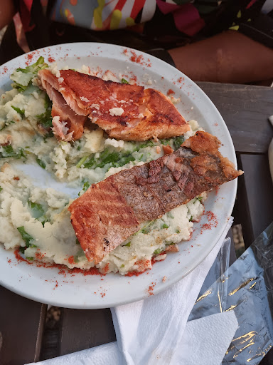 El lugar en sí es lindo, tiene un espacio amplio al aire libre con mesas. Pero la música es insoportable! El volumen es innecesariamente altísimo. Prácticamente no se puede conversar. Me sorprende que no se percaten de esto siendo que el publico mayoritario del lugar son personas adultas. La primera vez pedimos una picada RAKÚ. Desepcionante. Las papas bravas que decía que traía eran papas fritas de esas congeladas. Abundante cantidad de esas papas. Los langostinos rebozados tenían un sabor horrible, algo estaba mal ahí, no se podían comer y daba miedo comerlos. Las rabas duras y feas. Un detalle: en otra oportunidad pedimos rabas de entrada y esas sí estaban muy muy buenas y ricas. También pedimos pizza tropical y otra con panceta y chedder. La tropical cero onda, un ananá arriba de una especial. La otra zafaba un poco más, pero no estaba buena. Los tragos muy ricos. En conclusión creo que deberían mejorar la cocina! No volvería otra vez! El precio no va de la mano...