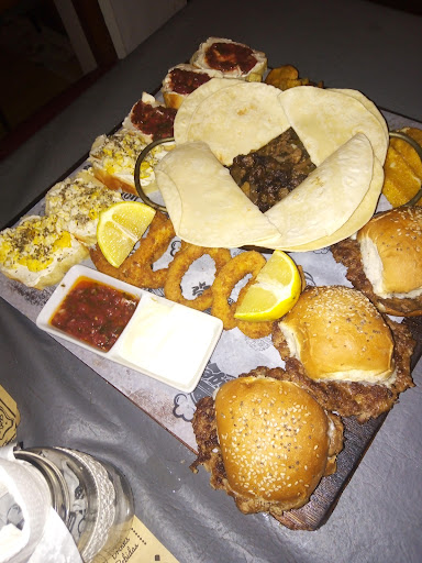 Viernes x la noche, pocas mesas ocupadas, hacía frío, por lo que elegimos una mesa en el interior. *El lugar: Nada positivo para destacar, lo mejor del lugar es comer en los espacios exteriores, en el interior la luz es excesivamente tenue, las mesas son pequeñas, no hay decoración ni nada que lo haga un ambiente agradable, sonaba música bastante fuerte, por lo que había que hablar casi gritando. *La comida: La carta es bastante básica, pizzas, lomos, hamburguesas, y 2 tablas. Esto último es lo que elegimos. En principio resultó muy agradable, bien presentada, pero al probar cambió la percepción, los llamados crostinis (rodajas de pan casero) estaban apelmazadas y los ingredientes que tenían eran muy simples, casi sin ninguna preparación. Las rabas eran 5 literal. El relleno de las fajitas estaba lleno de líquido aunque aceptable el sabor. Las mini hamburguesas con muy poco aderezo, creo que eran lo más sabroso de la tabla. El precio fue muy elevado en relación a la comida. Lo peor de todo es que a ambos comensales nos hizo mal, vómitos y diarrea, evidencia de que algo estaba en mal estado. *La atención: si bien el mozo se esforzó por atendernos amablemente, la demora esperando la comida fue excesiva, casi 40', cuando pedimos hielo para la limonada que estaba natural, tuvimos que esperar que fueran a comprar y cuando lo trajo, la hielera tenía una mosca muerta en el fondo. Al final el mozo insistió 3 o 4 veces para que dejemos propina y además debía ser en efectivo ya que desde transferencia nos dijo que no se la daban. Conclusión: Quizás fue una mala noche para el lugar o tuvimos mucha mala suerte, pero realmente es bastante difícil que volvamos...