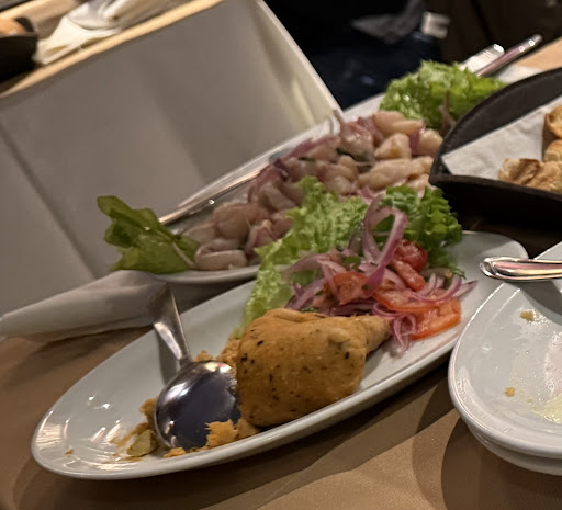 De todo lo mencionado lo único que pudimos degustar fue las causas y parte del chicharrón. La calidad del pescado muy mala(se sentía babozo) y el sabor totalmente alejado de un ceviche peruano, un asco. El tamal insaboro y con una consistencia de puré. En el chicharrón mixto las rabas totalmente mal empanadas, parecían calamares hervidos que los tiraron al sartén porque así seguro es la receta.