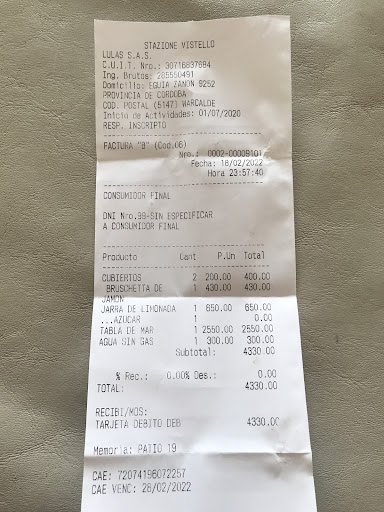 Hacia mucho tiempo que no salíamos a cenar con mi mujer, buscamos lugares recomendados y llegamos aquí con reserva previa. Lo único rescatable fue la buena predisposición del mozo, el resto lamentable. Antes que nada aviso que cobran cubiertos ($200 x persona )y las bebidas son extremadamente caras, una jarra de limonada $650 y un agua $300 Pedimos de entrada unas brusquetas de jamón crudo nos trajeron tapeo de la casa , el mozo se disculpó. De plato principal pedimos tabla de mar, después de esperar más de 1 hora recibimos la peor tabla de mar que hemos comido: rabas quemadas y saladas dos empanadas de salmon súper secas dos empanadas de calamar insulsas la mitad de la tabla eran papas fritas y tapaban todas las rabas faltaron los langostinos rebozados y para colmo en la tabla recibimos una empanada de carne de vaca…. el pescado pasable en resumen una tabla seca y aceitosa y sin limon (lo tuvimos que pedir aparte) Al reclamar al mozo se disculpó aduciendo que no estaban en un buen día en la cocina Al lado nuestro dos clientes se quejaban también e incluso llamaron a la encargada. Para terminar nos dieron una mesa afuera con una sillitas blancas espantosas muy incómodas y bajitas que te dejaban un calambre en las piernas como si terminaras de hacer un triatlón, pedimos cambiar de mesa y nos dijeron que esas eran para las reservas de dos personas. No lo recomiendo y no volvemos nunca más. MUY CARO PARA LO QUE OFRECEN. Creo que si alquilan el hermoso lugar para que cada uno lleve su vianda sería...