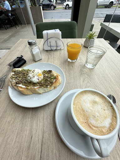 Café quemado, malo. La comida, escasa, mala calidad, mala presentación. El pan decía de masa madre pero era un pan blanco común La palta era cualquier cosa menos palta. Si nos hubiésemos sentado en un lugar con otro aspecto y otros precios, no diría nada. Pero te presentan un lugar con altura, te cobran como si lo fueran pero la comida deja...