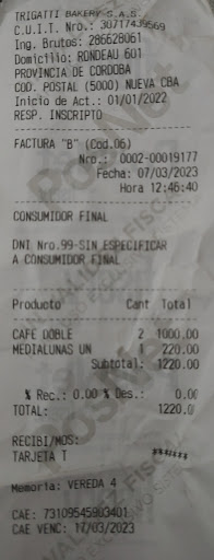Después me acerqué al personal de caja para preguntar y me dijo que había otra carta de productos para llevar. No me la dieron. No importa. Amablemente pregunté el precio de algo dulce y algo salado, (para elegir). La cajera estaba muy apurada y no me prestaba atención, yo nada más quería saber el precio para saber SI LO QUE QUERÍA ME ALCANZABA Y SI LO PODÍA SOLICITAR y esa actitud se notó a la cajera que le molestó y volvió a meter en la alacena como enojada lo que había sacado para pesar. Cabe destacar que sólo había preguntado por 2 (DOS) productos, no es que le pregunté por todos los ítems de la panadería, ya los había pre-seleccionado en las cartas por mi cuenta.