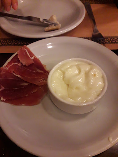 Read moreEl lugar y la infraestructura es mas o menos, se podria mejorar. La atención fue muy buena, rapida y atenta. La comida que es lo mas importante: Hay que aclarar que fui un jueves a la modalidad diente libre. La entrada era mayonesa casera a una temperatura media y jamon crudo que estaba bueno y un poquito salado de más. El primer plato tenia mejillones, langostinos y vieiras con queso. Este plato era abundante y rico (todos los platos no tienen sal) El segundo plato eran rabas empanadas y langostinos empanados, las rabas estaban freidas en aceite a baja temperatura lo que genera que absorban mucho aceite y los langostinos estaban casi pasados de cocción. Por lo demas el plato era abundante y rico. El tercer plato era una paella que no tenia azafrán y estaba preparada con arroz que no se pasa, contenia muy poca variedad de mariscos( pocos langostinos, muchos mejillones y algunos tubos de calamar) Tenia un gusto mefio soso y contenia mucho liquido. La bebida consumimos cerveza andes que la servian en las mismas copas de vino (como se puede observar en la ultima foto) eso me parecio raro pero bueno. Son todos detalles para lograr una comida cerrada y muy bien cocinanda, de todas formas el precio es super economico por la cantidad que se puede comer teniendo en cuenta que se pueden repetir esos platos las veces...