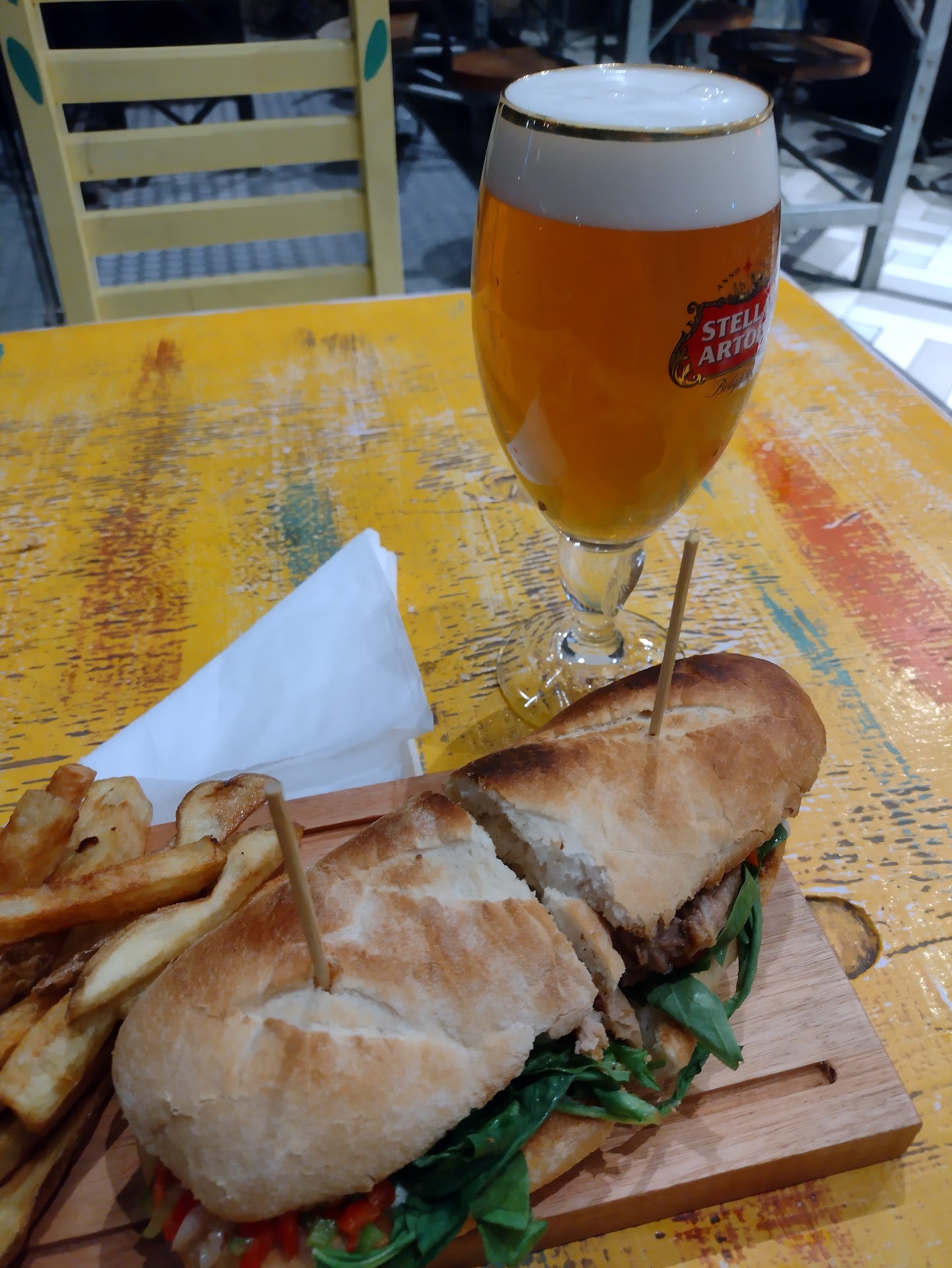 Read moreEl lugar es muy lindo en cuanto a estetica, pero el servicio es bastante malo, quizas sea porque es relativamente nuevo. Los locales no parecen tener el orden que se necesita como para, por ejemplo, atender de buena manera el flujo de gente que va un sabado a la noche. Eramos 5, fuimos al local de panchos y las dos opciones que queriamos no las tenian, la chica que atendia con bastante mala cara nos dijo que habia uno que era rico y terminamos comprando lo que nos sugirio (demora de 30min para un pancho, $180 pesos sin bebida), tenian mucho desorden, incluida una bolsa de papas tirada en el suelo, que despues cortaran para que las compres. Despues fuimos al local donde venden shawarma, de nuevo lo mismo...cuando nos llaman para elegir los toppings solo les quedaba lechuga y tomate! $180 pesos para 20 pedacitos minimos de carne con lechuga y tomate envueltos en una masa que estaba fria. La misma historia en la heladeria, pedimos las paletas mini para los chicos y obviamente no las tenian. En promedio gastamos $350 pesos por persona (comida, bebida y postre) y no lo vale. $1750 pesos en total para comida mala, escasa y fria. Otro punto que deberian considerar es la cantidad de mesas y sillas, disponen de mucho espacio y no hay lugar para sentarte, incluso habia mesas solas sin ocupar porque no tenian sillas. Seguramente volveré en otra oportunidad, pero si lo veo igual no...