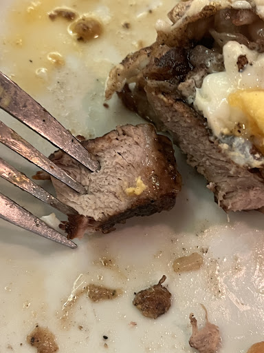 Pedi el solomillo al vino blanco, un plato que habia pedido ya con anterioridad, y estaba muy mal preparado, la salsa era literalmente caramelo, lo cual volvia empalagoso todo el plato, el cual parecia mas un postre que un principal. El solomillo estaba pasado, y en partes visiblemente quemado (carbonizado). Los zapallitos estaban crudos! Literalmente me costaba sacar el tenedor cuando los pinchaba. La peor parte es que espere mi plato 50 minutos.