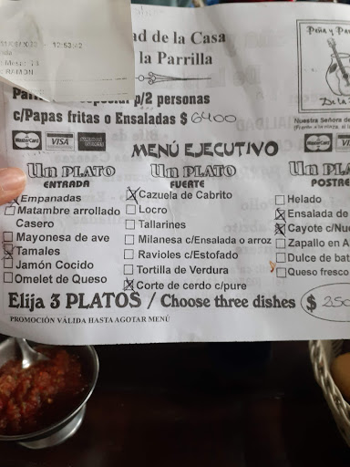 La única buena cosa era que el mesero fue pendiente y amable. Aparte de eso, todo pésimo. La etiqueta de la botella de aceite de oliva tenía ahí que se venció en 2020. Aceite de la pandemia. La carne fue sobrecocida. Nos recomendaron un vino “torrontes, muy bueno y local” por $7,000 ($9 USD), que cuando llegó, estaba en una botella con tapón de rosca y de hecho era una mezcla de Torrentés y Riesling. Estuvo bien comer por la plaza, pero considerando todo el resto, nunca volvería. Imagino que los guías tienen algún trato con el lugar porque vi en las otras reseñas que a otra gente le trajo su guía también. No puedo imaginar otra razón para ir. Despues me dijeron que el aceite era nuevo y que solo rellenan la botella vieja. Tal vez es así, pero la verdad—tengo mis dudas. Si sea, pues tampoco es bueno signo. No sé con certeza que fue este lugar que me puso enfermo, pero considerando todo, y las otras reseñas, creo que es más que probable. No arriesgues tu salud por favor y come en algún lugar a qué van los locales. Nunca tome el consejo del guía si te trae a algún lugar con grupo grande y dice que suele pasa toda...