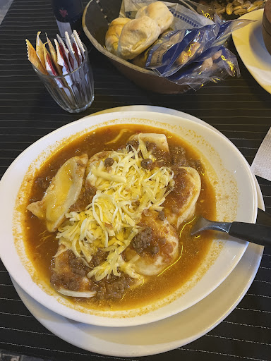 Fuimos porque está bien puntuado en Google (4.2} Hace rato que no veo un personal tan desmotivado. Pedimos: Fanta de 1,5L 3 Empanadas de carne. Media pizza. 1 plato de Ravioles con bolognesa. 1 plato de Costeletas de cerdo a la riojana con puré. La comida en su totalidad estaba sin sal. Las empanadas sólo rescato la masa. Los Ravioles estuvieron ok. La pizza, masa cruda sin sal, salsa ácida. Costeletas, 2 unidades, buena porción. Pero sin sal ni pimienta. No tenía gusto. Levanté la mano para la queja y la respuesta fue que aquí se cocina sin sal ni condimentos. Pero nunca aclaran de antemano y no lo solucionaron. La comida no está a la altura del precio. Enero 2024 con una...