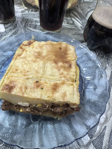 Los platos fueron realmente abundantes y sabrosos. El pastel de papa estaba casero, bien relleno con carne, choclo y huevo, y con una capa dorada perfecta. El sándwich completo vino con pan fresco, lechuga, tomate, huevo y fiambre, acompañado por una generosa porción de papas fritas crocantes. La ensalada fresca de zanahoria y tomate le dio un toque liviano al conjunto. De postre, una deliciosa compota casera de Cayote muy suave y con sabor auténtico.