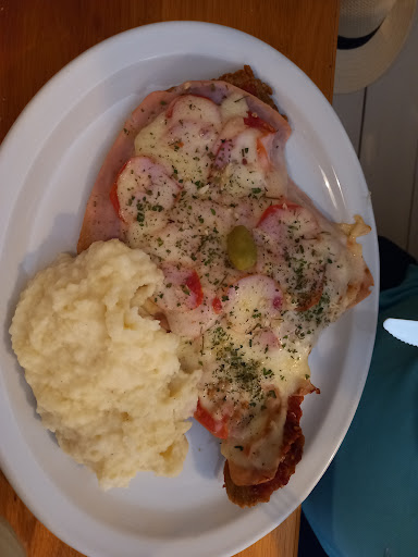 Cobraron el cubierto de una menor de 5 años porque no iba a comer nada de la carta si no que los papás le íbamos a convidar(a la moza se le caía la cara de vergüenza ) hubo un menú de suprema al Roquefort y bomba de papa , llenadora la comida pero para nada sabrosa. Y de postre, budín de pan o ensalada de fruta ( la ensalada de fruta era chiquita) . Otro dato es que el baño es ultra chiquito y UNISEX y al frente del baño unas escaleras a depósito que son un precipicio. Obviamente no volvemos más a este lugar, es una lástima. Ah y para los que les gusta la cerveza $4200 una Córdoba ( en plena avenida edén de la falda van a encontrar...