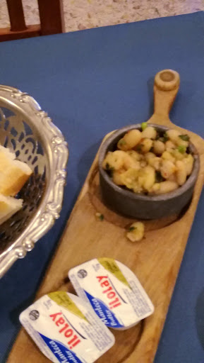 Todos clientes são recebidos com um couvert cortesia composto por pães, manteiga e porotos (feijões brancos).