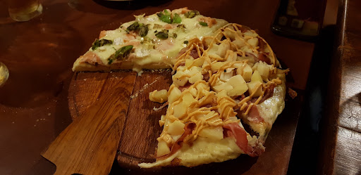 Read moreLes pongo un 3 para no ser cruel, pero realmente bajo muchísimo la calidad. Para nosotros era una salida de fin de semana fija y ahora no lo es. Nos pasó- las últimas 5 veces que tuvimos- que el queso de la fondue o la pizza sea muy salado y con mucho gusto al «suero» del queso... También notamos que la cerveza estaba como aguada, no se si cambiaron la fórmula, pero en el último año se nota mucho la diferencia en la calidad del producto. Yo no se si seguirán con las mismas marcas y estas bajaron la calidad o ellos tomaron la mala decisión de aumentar precio y bajar la calidad. Una lástima, porque seguimos yendo a pesar de que una vez nos dijeron que nos retiremos, porque supuestamente no les andaba el horno y vemos pasar una pizza para una mesa que había llegado mucho después (habíamos pedido pizza). Ante esto se le reclamó a la dueña y nos pidió disculpas y nos trajo el pedido ( todo muy de mal gusto) entiendo que hay que cuidar el cliente, pero no ponerle coronita a unos y decirle que se vayan otros cuando éramos habituales ahí. Una lástima que bajen así la calidad porque se...