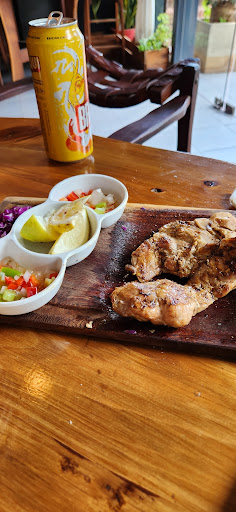 Me fuí sin comer. El lugar es muy lindo, creo que entramos suponiendo que la comida sería muy buena por el aspecto del lugar. Arrancamos con una entradita de empanadas, de carne picada o molida, como le dicen acá , esperaba una buenas con carne cortada a cuchillo, ya fue una decepción. Al probarlas, sentí un gusto ácido que no puedo relacionar con ningún condimento ni encontrarle una explicación más que pensar que no estaba en buen estado. No dije nada y la dejé. El termómetro marcaba 38° y 39° de sensacion termica, las bebidas no estaban tan frías, ls cerveza... para el olvido.Fuimos 3 y pedimos 2 porciones de pollo a la parrilla con ensalada, la cual no podés elegir ni cambiar, viene si o si con ensalada mixta con unos tomatitos casi al punto de ser usados para hacer una salsa, se entiende, no? Y la salsa criolla que lo acompaña era un chiste, un par de cebollitas picadas y otro poquito de ají, 2 -3 rodajitas de limón cortadas milimetricamente El pollo lo pedimos bien cocido, tuvimos que mardarlo nuevamente porque no estaba en el punto, se veia grasa amarilla. Cuando lo probé, una de las porciones tenía un gusto rancio a pescado, imposible de continuar comiendo. Lo dejé. El otro plato era tallarines con salsa mixta, tallarines pasados, pegoteados y cortados. Queso de paquete, cualquierr cosa menos queso... Desagradable. Al solicitar la cuenta, le comunicamos lo incomible del pollo y lo descontaron ya que una de las porciones quedó entera. Obviamente no lo recomiendo. El lugar es muy lindo, el interior con aire acondicionado. Deben mejor la calidad de lo que proponen en el menú. La carta bastante acotada. Los precios acorde a los de la zona. Hay parrillada con achuras y costilla de asado, pero no de cortes, ej. no podés pedir una porción de asado de tira...una estafa...