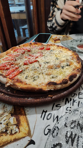 Pasamos por la puerta yendo a buscar una parrilla y nos encontramos con una pequeña degustación de pizza en la puerta de este lugar. Con mi novio decidimos probar un pedacito y nos miramos y supimos que debíamos volver para cenar. Al día siguiente allí estabamos y pedimos una pizza napolitana con unos aperol que estaban en promo. Todo estaba riquísimo y lo trajeron super rápido. Fueron siempre muy atentas todas la personas que trabajaban ahi. Cuando nos terminamos la napolitana, tuvimos que pedir una de muzza porque estaba demasiado rica y de ultima (dijimos) nos la llevamos para desayunar 👀 - a few moments later - no habia mas pizza...