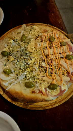 Read moreMuy buena pizza a la piedra. La salsa es suave pero sabrosa sin interferir. El queso no es abundante pero adecuado. Y la masa es a la piedra vieja usanza pero lo hace muy bien. tiene mucha variedad de sabores y todos con abundante relleno sin amarronar. Un plus que también hacen faina y pizzas rellenas que las probé y son muy buenas también , no solo las rellenan con queso sino con los ingredientes del sabor.