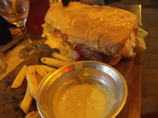 La comida... Las papas estaban bien hechas ,recien salidas ,el sándwich muy lindo a la vista , con una milanesa que ocupaba la mitad del pan , la limonada con arándanos me encantó. Que cambiaria del lugar para que esté más arriba? La cocina, no tiene capacidad de producción con respecto a la demanda , habian 6 mesas ocupadas y todos esperaron mucho a que les sirvan la comida, y es una lastima xq es uno de los pocos lugares lindos para comer en Palpalá y uno no vuelve cuando las malas...