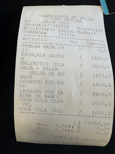 Read moreEl lugar es muy lindo, las 2 primeras veces que fui me encantó la comida la atención todo. Hoy tengo que decir que los mozos dejan mucho que desear, nunca me trajeron algo tan fundamental como pan. La bebida tuve que pedir varias veces que me la traigan al igual que el hielo. Una de las chicas moza parece muda. La otra chica muy bien.! Por otra parte achicaron bastante la porción del plato lo cual me pareció malísimo. Eso es todo! Una lástima que un lugar tan lindo se...