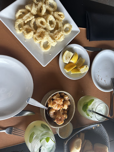 Es un buen ambiente, llegamos y estaba lleno el salón, nos pusieron en lista de espera (éramos dos), rápidamente conseguimos mesa, pero así y todo teníamos una pareja y una familia antes que nosotros que también consiguieron mesa muy rápido. El servicio amable, me pareció más amable el servicio que tuvimos a la mañana, y la actitud de decir bon appetit, con una sonrisa, demostrando el buen humor del personal. De noche fuimos y comimos ñoquis, uno con estofado y otro crema de hongos, la cual si estaba ligada la crema, el cual es el caso que tuve el día anterior en otro lugar que era solo crema y parecía agua, acá estaba rica la crema y los hongos también, no cocidos de más y triple variedad: champignones, portobellos y hongos de pinos (no escatimado el tamaño). El de estofado muy rica la carne, buena temperatura, y las verduras en un buen punto, el tamaño también bien de las verduras, la carne estaba en el mejor punto de una cocción así, blanda como tiene que ser, hasta se podía desmenuzar un poco. De mañana comimos langostinos al ajillo y rabas, exquisitas las rabas, se nota tanto comer estas cosas frescas, cerca de donde se pesca. Los langostinos ricos también, tal vez un poco pesado por el aceite que conlleva pero eso no lo hace menos rico. El aperitivo y pan que ofrecen al comienzo también bien, el aperitivo sutil, ligero. Ah, la limonada, de lo más rico que he probado por la zona, el sabor a jengibre me encanta, capaz para otros puede ser un poco exagerado