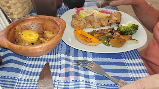 Read moreEstá muy bien ubicado , llama la atención de todos , buena música , pero se demoraron como más d 1 hs en traernos la comida , el plato de tira de asado un chiste , eran dos tiritas de asado con 5 papas y salió 17 mil pesos Lo q pedí yo eran milanesas de berenjenas que estaban bien Pero la ensalada rusa muy chica . No llenaba para nada esos platos y te cobran caro . La atención no fue buena , me tuve q acercar a pedir la cuenta , luego me tuve q acercar a pagar , luego me acerque para pedir si me podían guardar la porción de pollo q había pedido para mi bebé ya q no había comido casi nada y me dieron 2 bolsas para q yo me guarde las porciones . Nunca se acercaron a la mesa .. malísimo . encima nos pusieron criolla en los platos sin consultarnos , y sabiendo q el pollo era para mí bebé igual le...