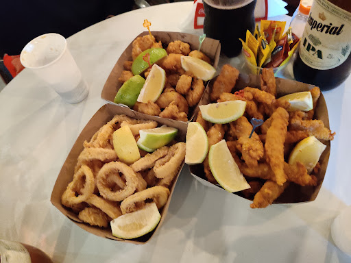 Read moreEs un parador donde se puede comprar para llevar o comer en mesitas. Los langostinos son exquisitos y recién hechos, lo mismo las rabas. Todo muy rico, buena atención. Precio de bandeja grande de langostinos $8500. Pedimos una bandeja grande de langostinos, 1 bandeja mediana de rabas y dos conos de papas y comimos re...