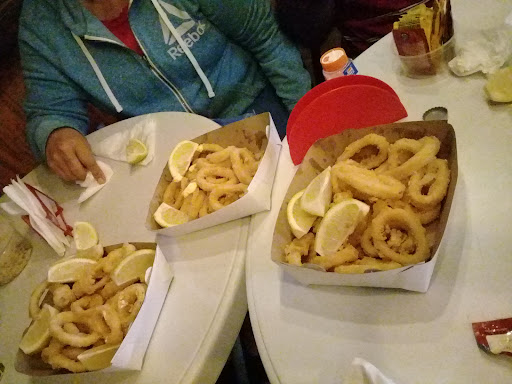 Cómo explicar con palabras lo que fue la frita de mar que comimos. Rabas, bastones de merluza (de verdad. No picado procesado), langostinos que parecían salchichas y papas fritas. Suave, fresco. Nada de gusto a aceite recocido. Un manjar. Si pasas y querés comer bien. Mándale nomás, no te vas a arrepentir.. El caballero que nos atendió muy amable, cada vez que pasaba nos preguntaba si estaba todo bien, Si...