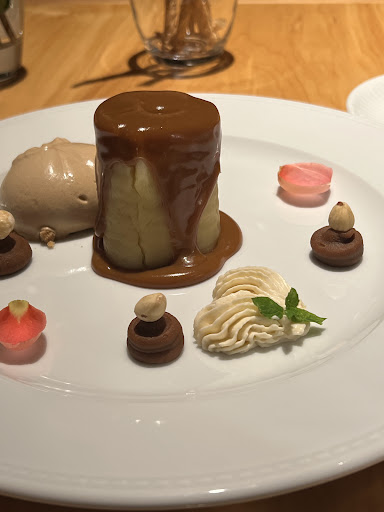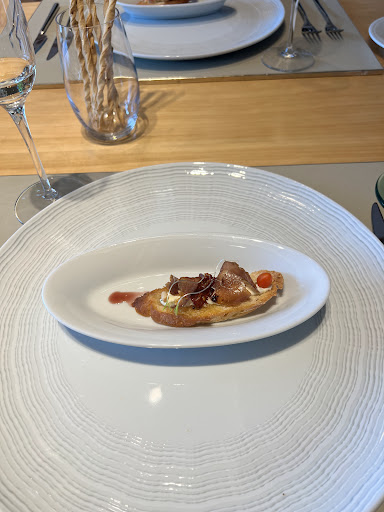 Having been all over the world I can honestly say this is an incredible world class restaurant, one of the best I've ever been to. They started me off with breadsticks and eggplant pâté and sent out two amuse-bouches, one of which had a delicate, slightly sweet sesame crisp on top. It reminded me of the sesame candies I loved as a kid (but what an elevated version!) I had several glasses of the Malma family reserve malbec, an outstanding wine to have available by the glass. The langoustine starter is the best langoustine dish I've had...enough for a meal... and the combination of crisp, slightly sweet pickles with greens, blue cheese, etc. is inspired! Beautiful dish. Next I tried the gnocchi cacio e pepe, a fresh new take on an old favorite (the whole peppercorns take this decadent Italian dish over the top). I was going to leave but was encouraged to have some dessert (so few restaurants do this, I like to be offered everything, from apero to digestif), I'm so glad I said yes, finished off with a beautiful poached pear with drizzles of chocolate and a few other special touches. The owner and chef is a beautiful human being, you can see that she puts her heart and soul into every dish, every decor item...I even loved the plates and glasses. This hidden gem is my favorite find in Bariloche. From beginning to end, everyone I ran into or interacted with onsite was warm and welcoming....