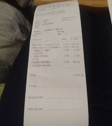 The food was good, the prices are normal for sushi places (3000 pesos for their basic combination of 24 pieces) but we were charged for something we didn’t order (maybe it was the bread they served unsolicited, but in Argentina bread is free when given by the restaurant normally), or it was seating cost. Nevertheless it was weird. Beverages are a...