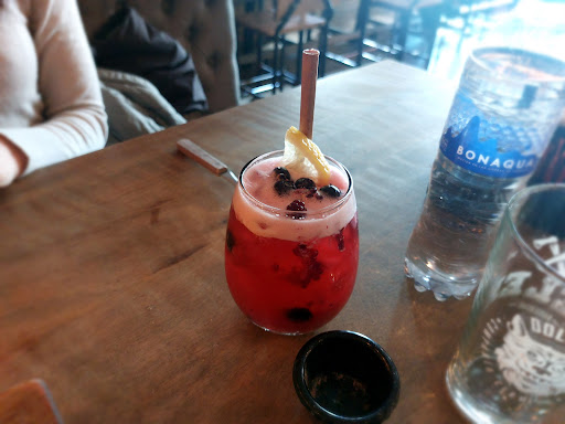 Me encantó la decoración, la máquina de pinball en la pared, las mesas, la onda, la barra...