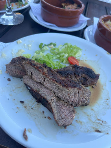 We ordered two bife de ojos and our friends ordered a pizza. The pizza arrived pretty fast and steaks one hour later. Our friend was obviously done with his food when ours arrived.