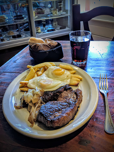 EDIT: We went back because we needed a place close to the Airbnb to kill some time. I had the daily soup instead & it was really tasty, my dad had the empanadas - also good. The service was slightly better as we sat inside and were attended to quicker, but still not checked on throughout our meal. My mom got the same burger, asked the waitress to make sure onions would be in it (as it’s listed on the menu), and it didn’t have them again, lol. Better experience overall this time around,...