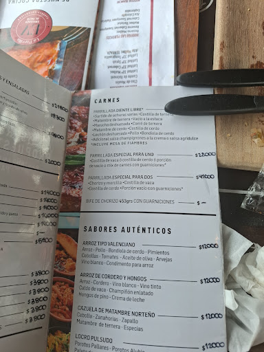 Read moreSi vienen, y piensan comer carne, si o si deberían pedir el diente libre si quieren comer bien, la parrilla para dos, la costilla de vaca (4 huesos), el vacío es relativamente normal, la costilla de cerdo fue inexistente, nos cambiaron por otro corte de cerdo bastante chico, el chorizo vino bien, la morcilla no vino en un principio asi que tuvimos que reclamar para que nos la den (Aparentemente no estaba lista y por eso no la trajeron en un principio), la parrilla para especial para dos ( $41000 ) esta muy inflada de precio, ya que los cortes qué aparecen en la carta son un cuarto de lo que realmente trae, si están de paso como nosotros, es preferible tomarse el tiempo de entrar al pueblo y buscar un lugar mejor. (La parrilla para 2 entra en la bandeja de...