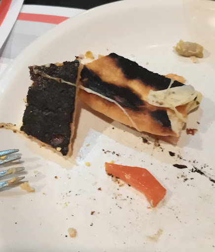 Read moreAnoche fuimos con 9 amigos y para empezar pedimos 2 pizzas y 2 picadas de mariscos a las 22 hs. Después de varios reclamos, a las 23:56 (2 hs. después) trajeron nuestro pedido. Las rabas estaban frías y una pizza es la de la foto. Nos quejamos y el dueño o encargado, para dar por cerrado el tema, preguntó: ¿qué quieren, que no les cobre? No tiene la menor idea. No queríamos nada gratis, queríamos pagar por un buen servicio. Es probable que él y su cocina hayan tenido una mala noche y se vieran sobrepasados por tener el restaurante a tope, pero aunque nos hizo un descuento, nosotros también tuvimos una mala noche por haberlos elegido. Hay que destacar la amabilidad del mozo, un muchacho con acento centroamericano que hizo lo posible para disimular la pobre calidad del servicio gastronómico. Ese mozo, por su cordialidad, fue lo único bueno de nuestra noche...