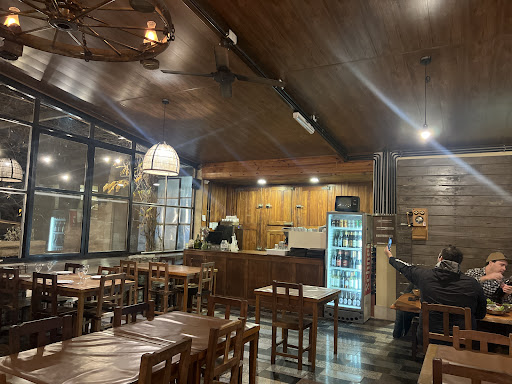 Llegamos temprano por la noche, había solo una mesa ocupada. Nos atendieron rápido y muy cordialmente, y nos dejaron elegir cualquier mesa. La ambientación del lugar hermosa. Bien de campo, y con adornos de productos antiguos. Por la ventana se veía todo verde con las luces de noche. Hermoso.