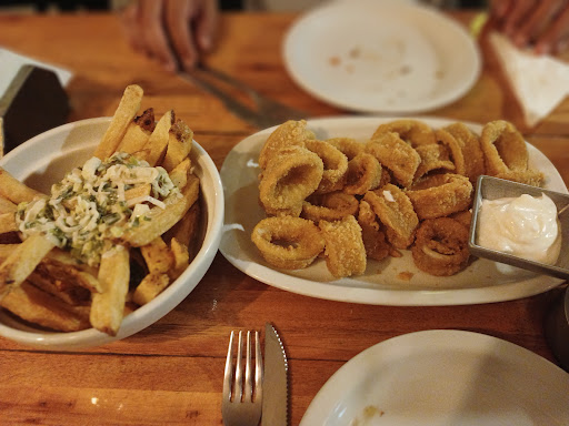 Excelente todo ! Desde la atención de las mozas, el tiempo en el que vino la comida los sabores . Todo de 10 . Comimos empanadas de vacío, fritas . Tremendas . Les pedí un dip y me lo agregaron sin problema. Luego unas rabas y fritas con crema de verdeo . Las rabas super frescas grandes y la porción generosa , venía con provenzal y mayonesa casera. Las fritas pedimos con crema de verdeo , sarpada en rica también. Y birra rubia artesanal también muy buena . Mis felicitaciones al lugar y la gente q labura ahí. Me quedé con ganas de la entraña , que no había más pero volveré por ella . Las rabas y papas q se ven en la foto compartimos entre 2 y estuvo bien . Pedimos 2 empanadas más en total 4 . Pero xq nos gustaron no xq no nos haya llenado todo el resto . Sigan así gente ! . Ah había banda en vivo tocando, muy buenos también. Y pasan regge de fondo 🫶 🍀🎶!! Los precios bien . $23 en total habían un 10off...