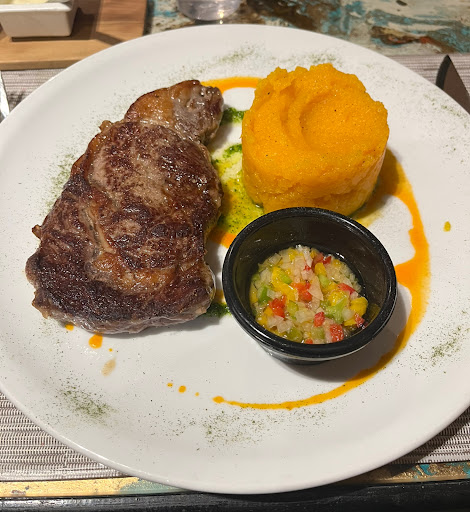 Read moreVenía bien recomendado a este lugar y en general la experiencia de esta noche me decepcionó. La reserva fue bien tomada y la mesa que nos otorgaron era excelente. El camarero no pudo reconocer el.vino que pedimos, por cierto de la carta, y tardó más de 4 minutos en darse maña para sacar el corcho de la botella lo que muestra su falta total de conocimiento sobre la carta de vinos y sobre como se descorcha una botella normal. Repitió 3 veces lo anotado de nuestros pedidos lo que es exagerado control o falta de seguridad sobre lo que el mismo anota. Las rabas eran flacas y su alioli muy alimonado, el brie con crocante de maní estaba frío. El risotto de hongos fue bueno igual que la sopa y la pasta rellena aunque sin aristas sobresalientes. Los comentarios sobre el Thai Pad y el goulash fueron apenas regulares. Cuando se acabó el pan hubo que reclamarlo al igual que el hielo y la segunda botella de agua. Colmó nuestra paciencia que el camarero ignoró nuestra mano levantada por minutos cansados de esperar que levantará la mesa y nos ofreciera postres, los que al final, comimos en otro lado hartos de la tardanza. Entendemos que la cocina sea lenta en esta época del año pero que el camarero esté mal entrenado o no ponga garra en el trabajo es más de lo que un negocio puede soportar. Tienen mucho margen para mejoras! No sé...