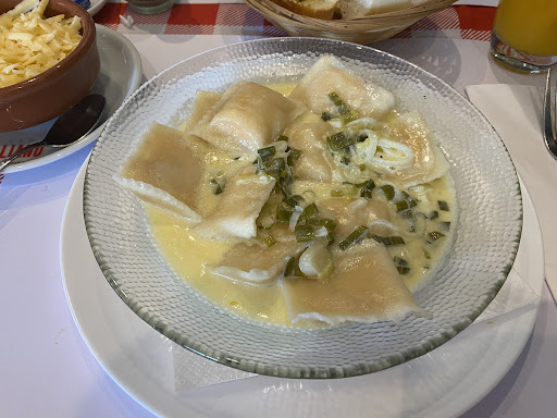 La comida tampoco logró destacar. Pedimos sorrentinos de trucha (que también parecían tener ricotta, aunque no estaba indicado en el menú) y ravioles de espinaca. Ambos platos fueron simplemente correctos, con un sabor promedio, un 3/5. Nada que sobresalga ni que justifique una visita especial.