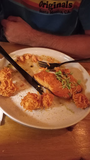 Comimos la trucha y los langostinos. Realmente exquisito todo! Hasta el postre que fue un marquise de chocolate con maracuyá era una delicia! Incluso como fuimos con mi hija, nos prepararon unos spaguetti con crema, aunque no figuraban en la carta. Es el mejor lugar para comer en Necochea. Los precios son super accesibles para la calidad y el nivel de cocina. El ambiente es super cálido, están atentos a que la temperatura sea la ideal, se puede conversar super bien, no se hace bullicio. Están en todos los detalles, hasta los cubiertos, la vajilla y los vasos son preciosos! Las chicas que nos atendieron fueron super amables. Desde ahora es mi lugar favorito para cada vez que venga de vacaciones! Ojalá tengan...