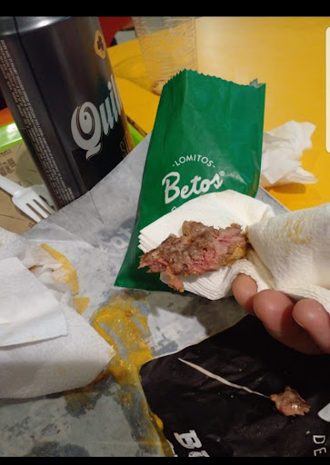 Read moreMala experiencia y no es la primera vez. Me dieron un Betos lomo grande tibio en la parte de arriba del pan y la carne tibia también. De la mitad del sandwich para abajo...frío!!! El huevo frito bastante oscuro, no daba la impresión de que fue recién hecho. Les pedí que lo calienten y me devolvieron con 2° más de temperatura... Encima me cayó terrible!!! Llegué descompuesto a mi casa. Esta vez les hice la...