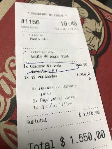 Read moreComida pésima, las empanadas de carne frita excesivamente saladas, condimentadas y sabor raro. Las de verdura muchísimo peor. Sabor a lavandina tenían! Luego de comerlas 30 minutos después, descompuestos y con vomitos. Llame infinidad de veces (nunca contestaron) Escribí por Instagram y tampoco recibi respuesta. Luego de haber pasado 24 horas enfermos a causa de su comida en mal estado, nadie se contacto con nosotros No reclamo dinero ni devolución! Pero pueden enfermar muchísimo a una persona! NO...