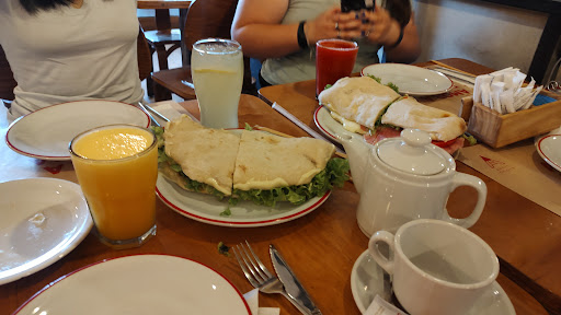 Fuimos a merendar, pedimos 1 panini de pollo con palta, tomate y algunos ingredientes más, también un lomo de ternera, limonadas y licuados de frutas al agua. Medialuna con jyq + servicio de té. La comida estuvo riquísima! Muy buena la calidad de los ingredientes, el pan blandito, el pollo con un sabor riquísimo a la plancha, para mí grata sorpresa la palta muy bien hecha, parecía con ajo y limón, muy sabroso! Los licuados el de frutillas delicioso!! También pedimos limonada que estaba muy fuerte, y bastante dulce.. Y yo me pedí uno combinado con exprimido de naranja y durazno, también riquísimo!!