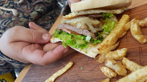 Realmente nunca comí algo tan insípido en mi vida. En este lugar se nota que hay falta de jefes de cocina con estudios o pleno interés por lo gastronómico. Horrible, creo que si me hubiesen servido algo mal de sabor era mejor que esa comida. Para empezar con la comida pedí un sanguche de pizza con carne. Horrible, carne seca, el horno de barro es para facha, lo único que tenia sabor era el orégano, el piso de la pisa estaba seco y sucio, papas grasientas y materia prima de 4ta. Atención tardía aunque estábamos en frente, 20 minutos para esa pizza y el encargado del horno tenia uniforme sucio, solo una remera arrugada, gorro y poca higiene. No la recomiendo, si andas por ahí te sale mejor pedir en McDonald's...
